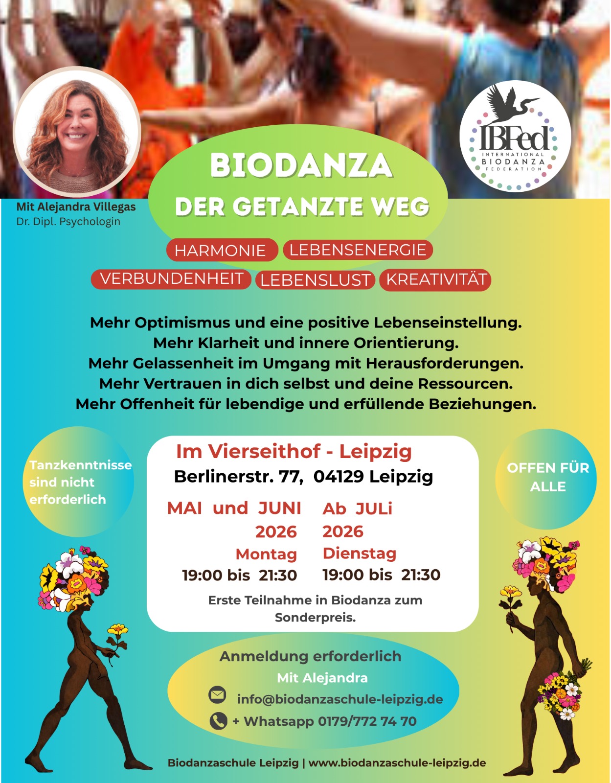Wir rufen alle auf, die an dem Abenteuer Biodanza SRT in der Biodanza-Schule Leipzig mit Alejandra und Gästen, von erlesener menschlicher und fachlicher Qualität, teilnehmen wollen.